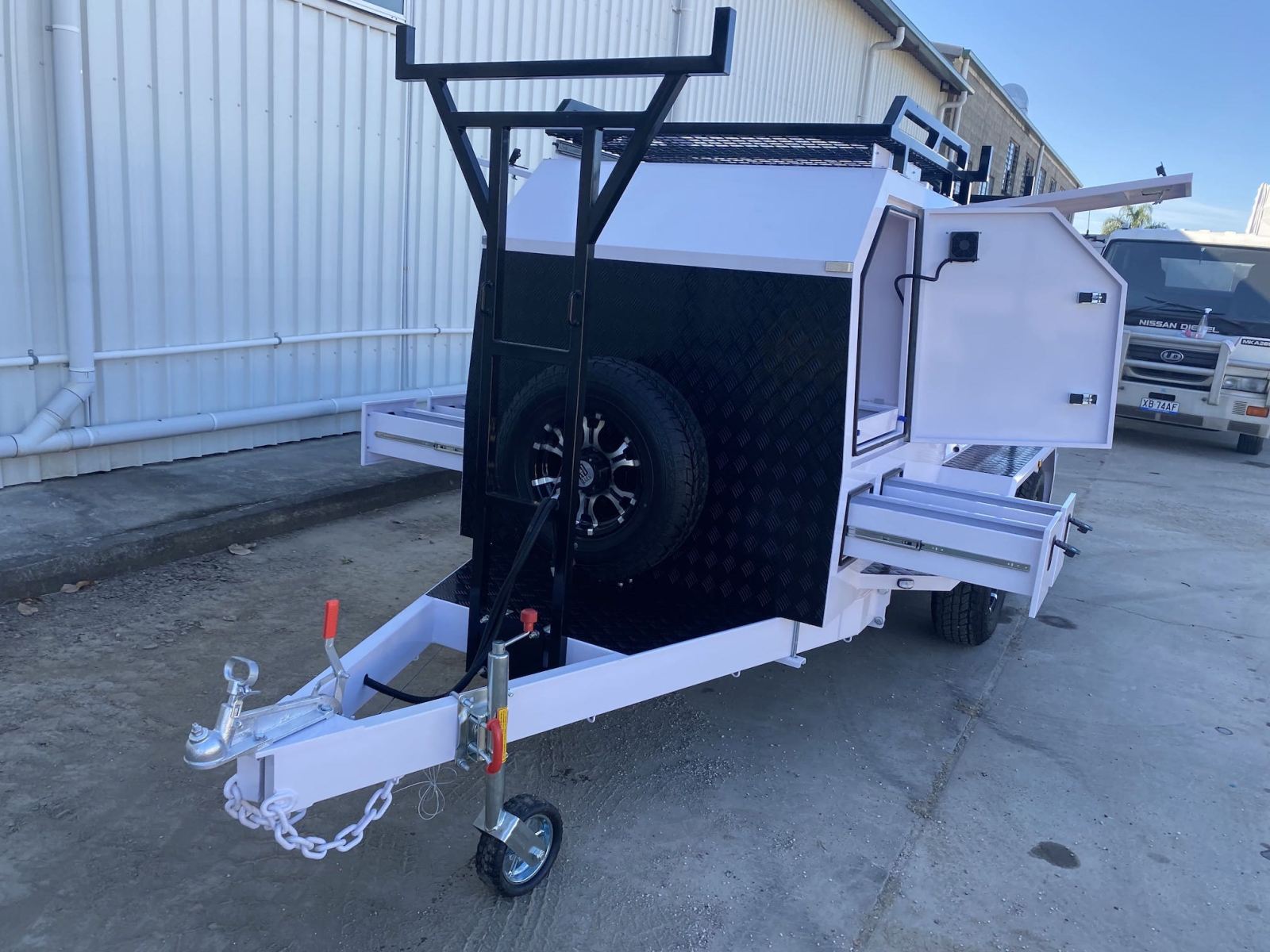 The Maxi ute could be just right for you, 3900mm long, with 1467mm enclosed lockable storage plus 2250 open storage, the Maxi Ute allows you to work with 4 or 5 people easily, or simply carry more tools and materials plus with the premium package you have everything you need to be efficient from day 1. Read on for more details and register above or below to watch a detailed video tour of the Maxi Tradie Trailer King ute.