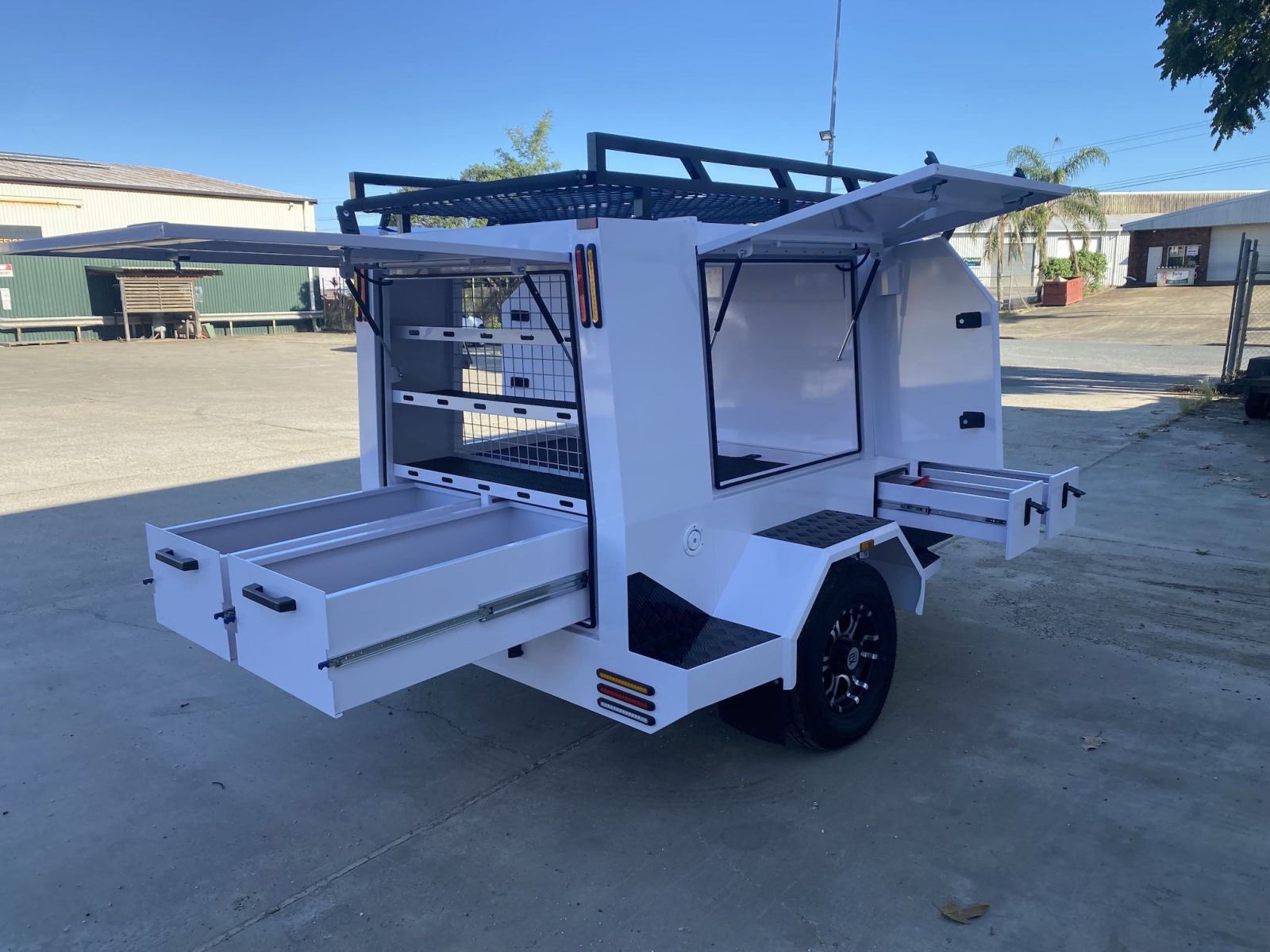 Register above or below to take a full detailed video tour, and be sure to scroll down as well to check out the upgrade options for our tradie trailers.